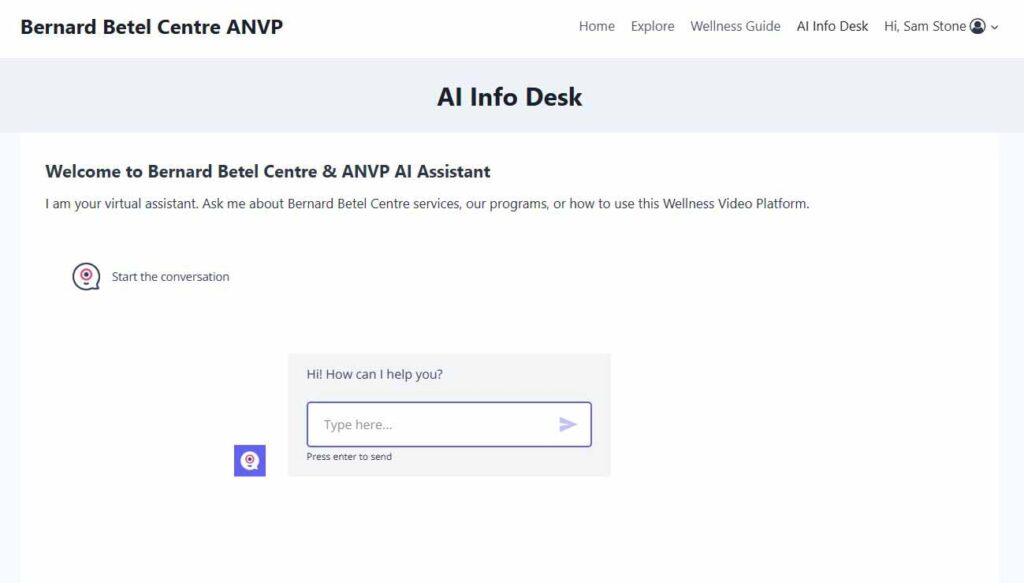 - Custom Training: AI trained on your organization’s specific documents and website (e.g., Betel Centre services).
