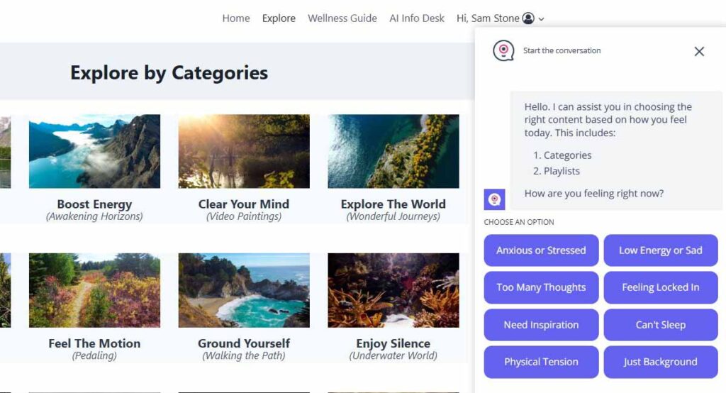 - Mood-Based Selection: Content is organized by desired emotional state (Deep Calm, Energy, Connection) for instant engagement.
