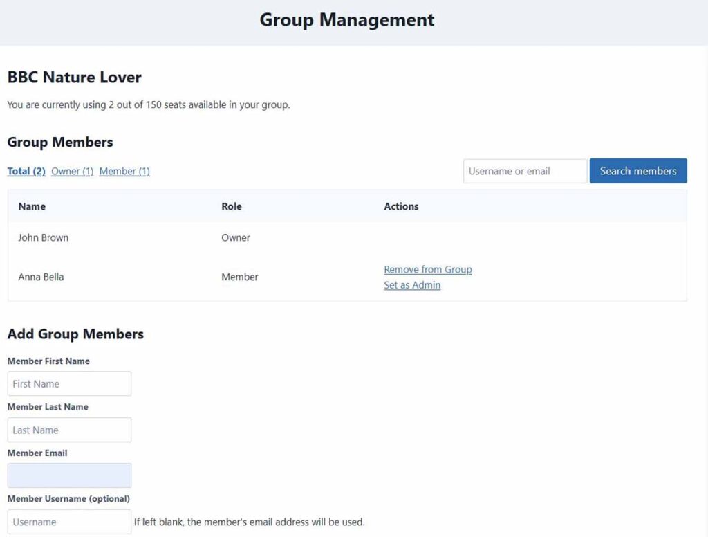 A secure environment allowing users (group members) to manage their personal access, while the Group Manager maintains full control over the group.